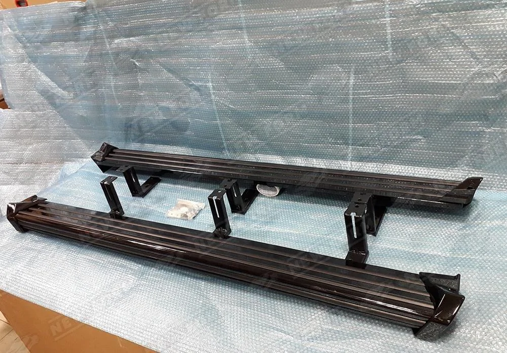 Поверхность порогов выполнена из алюминия, каркас порогов и кронштейны стальные.