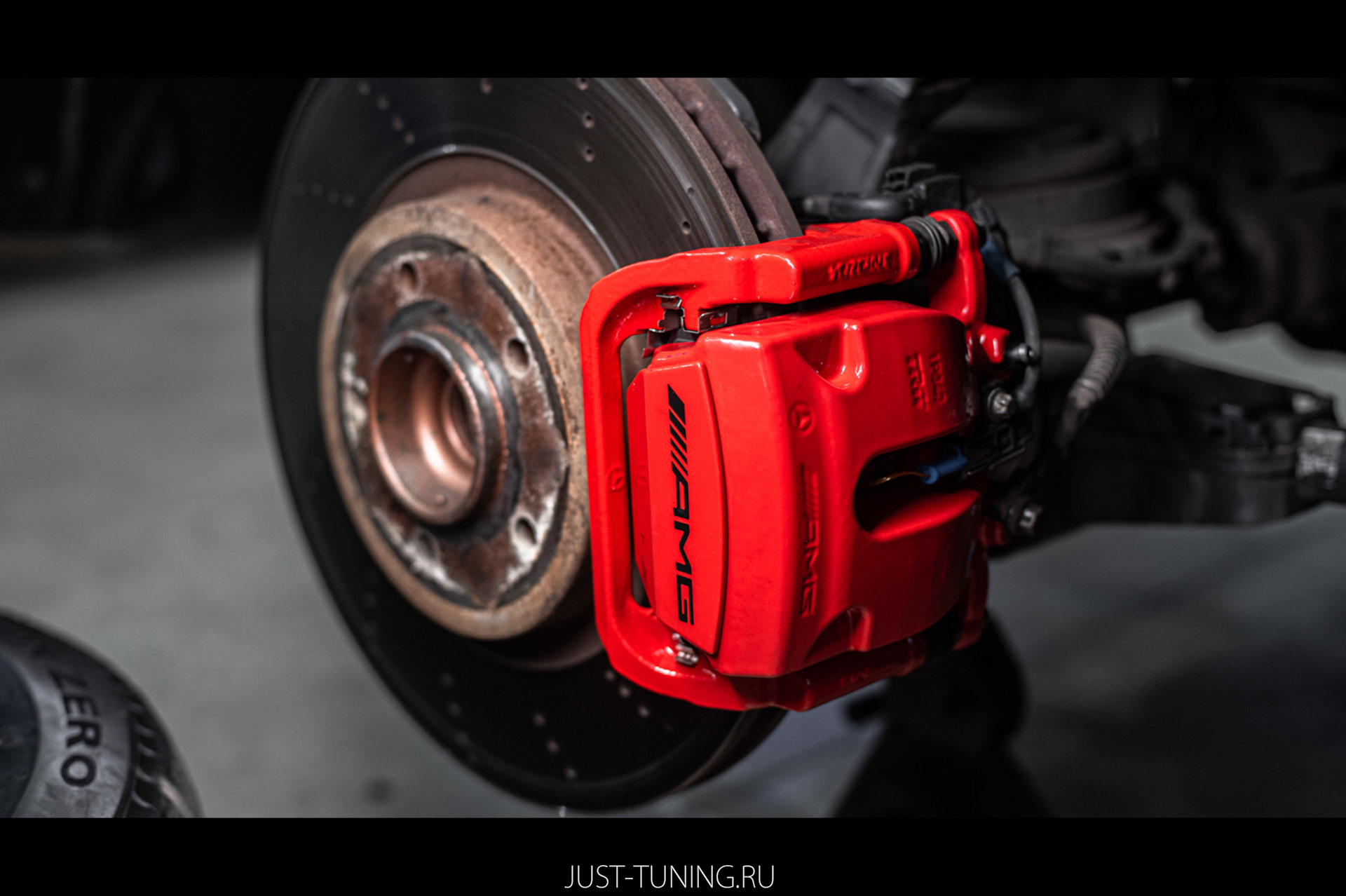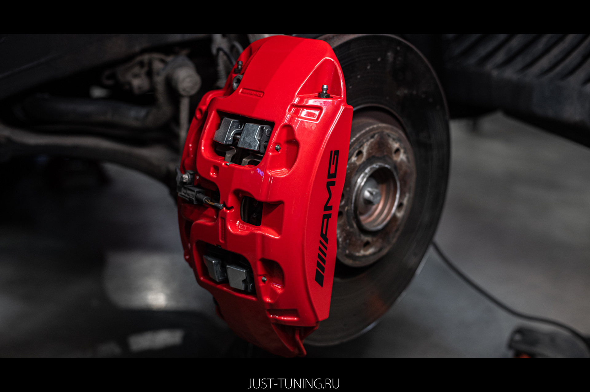 ✔️ окрасили порошковой краской колесные диски, поводки дворников, насадки выхлопной системы и суппорты с нанесением логотипов AMG
